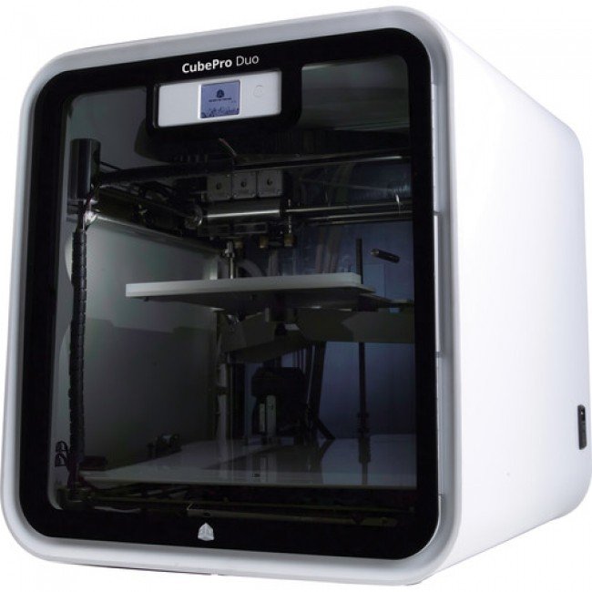 The CubePro Trio is a desktop 3D printer with a triple extruder from 3D Systems, designed to print in 3 colors simultaneously or use different materials in the same object.