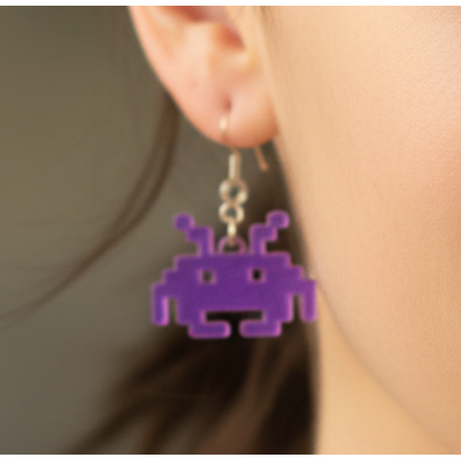 Pendientes con diseño tipo Space Invader. También he creado una versión de doble grosor siguiendo las sugerencias de mi pareja.