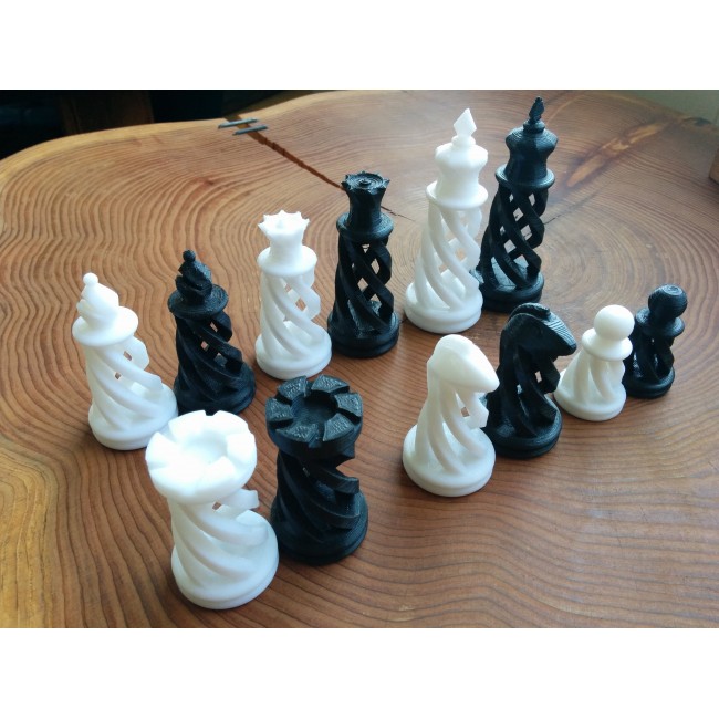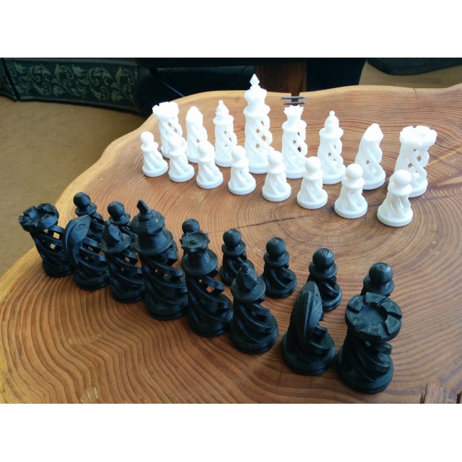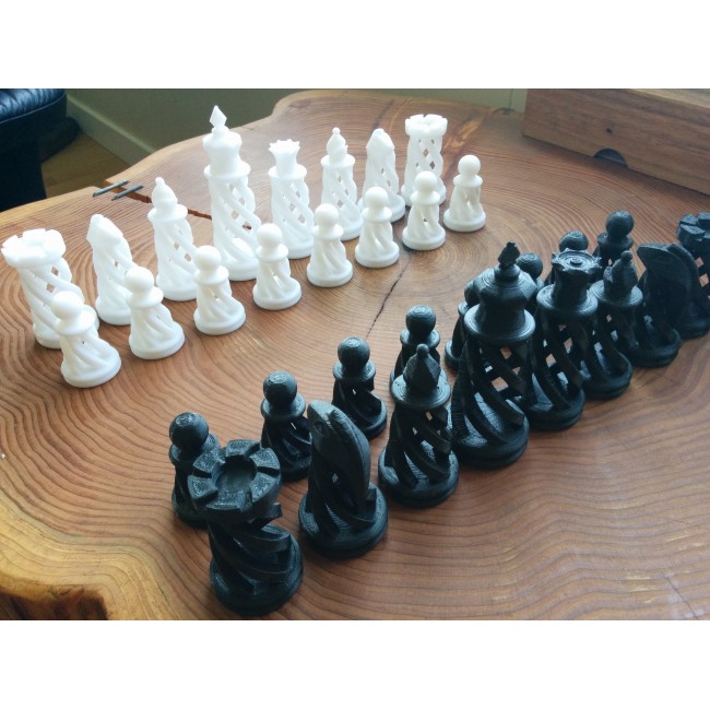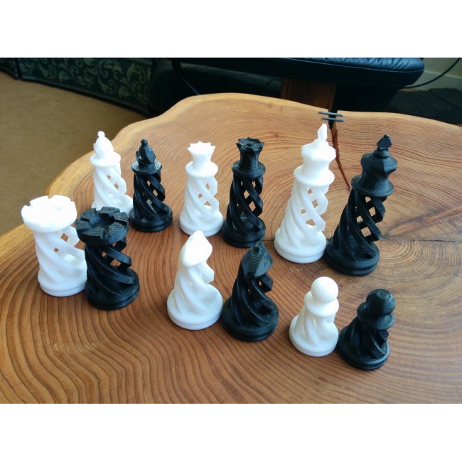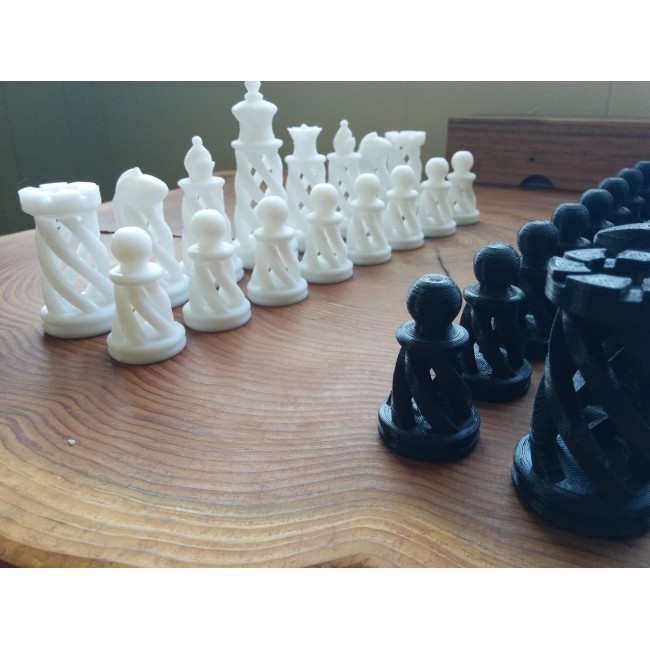 Un set di scacchi a tema spirale che può essere stampato senza supporti. L'ho modellato io stesso e attualmente sto stampando un set. Qualsiasi critica è benvenuta e apprezzata. Questo è un progetto a cui sto lavorando da quando ho acquistato la mia stampante. Volevo sviluppare qualcosa che non potesse essere realizzato con nessun altro processo se non la stampa 3D. Per un po' non sapevo come realizzare il cavallo, ma finalmente sono abbastanza soddisfatto di tutti i modelli da poterlo pubblicare. Poiché questo set è stato stampato con successo, non lo considero più un lavoro in corso. Se in futuro dovessi apportare modifiche significative, probabilmente lo caricherò come nuovo file.