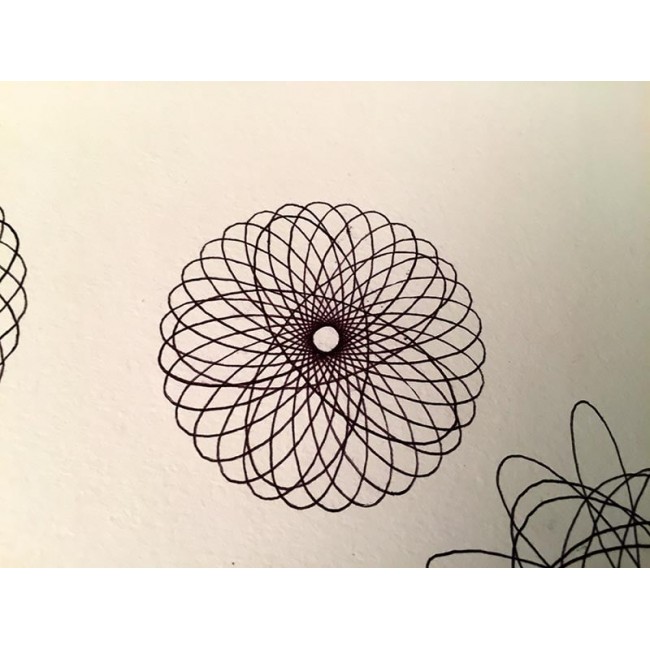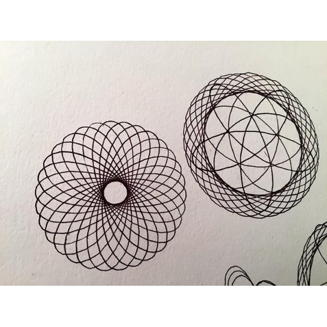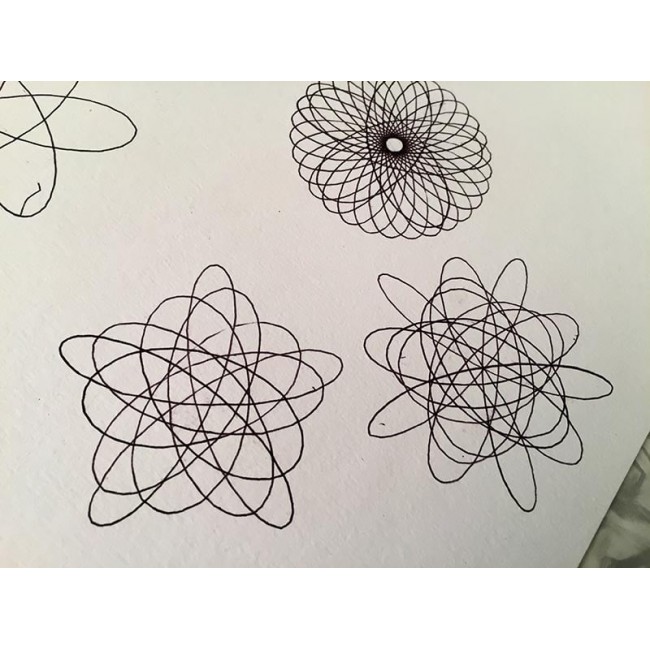 Il funzionamento è simile a quello di uno spirografo classico, permettendo di realizzare motivi simmetrici e dettagliati con semplici movimenti.